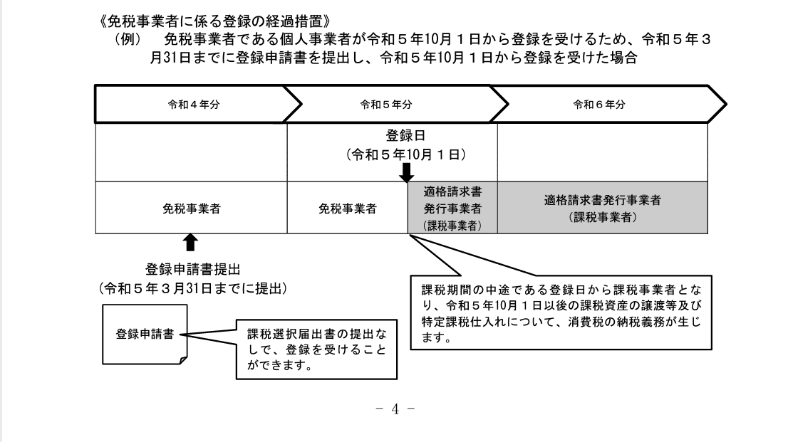 なお、課税事業者となった令和5年10月1日から令和5年12月31日までの期間については令和5年分の消費税の申告が必要となります。