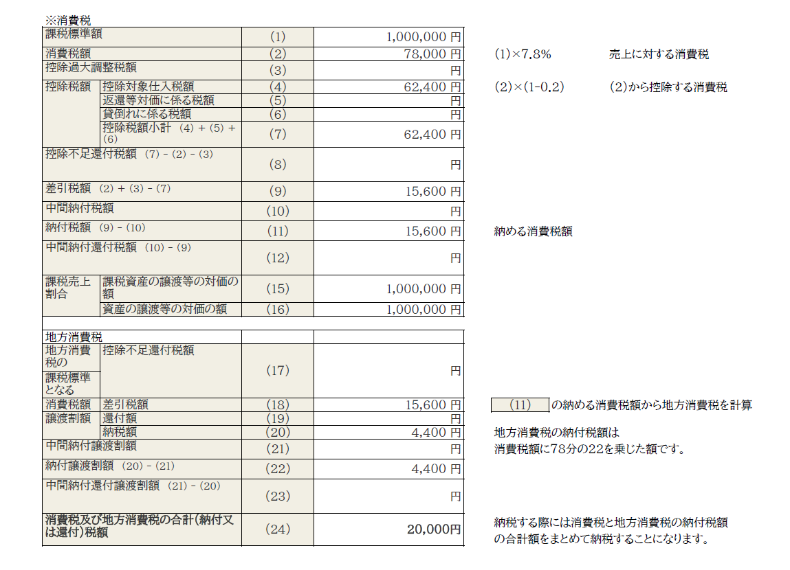 ※ 消費税の計算は、消費税と地方消費税に分けて計算します。