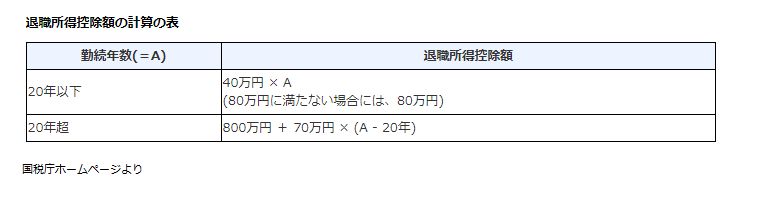 2019年11月1日 / 最終更新日時 : 2019年10月1日 sato NEWS 長期欠勤や休職期間があった場合の退職所得控除について 退職金を受け取った場合、勤続年数に応じた退職所得控除があります。 退職所得控除は次のように計算します。 この勤続年数には、長期欠勤や休職中の期間も含まれます。なお、他に勤務するための期間は除かれます。 FacebookXBlueskyHatenaCopy コメントを残す コメントをキャンセルメールアドレスが公開されることはありません。 ※ が付いている欄は必須項目ですコメント ※ 名前 ※ メール ※ サイト 上に表示された文字を入力してください。 Δ